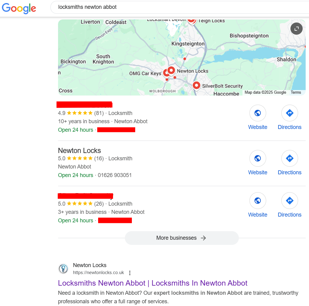 As a newly established business, Newton Locks needed to build their online presence from the ground up, making SEO a critical component of their digital strategy. The short-term goal was to become the top-ranking locksmith in their hometown, Newton Abbot, while the long-term vision is to expand visibility across South Devon, surpassing local competitors in search rankings town by town.